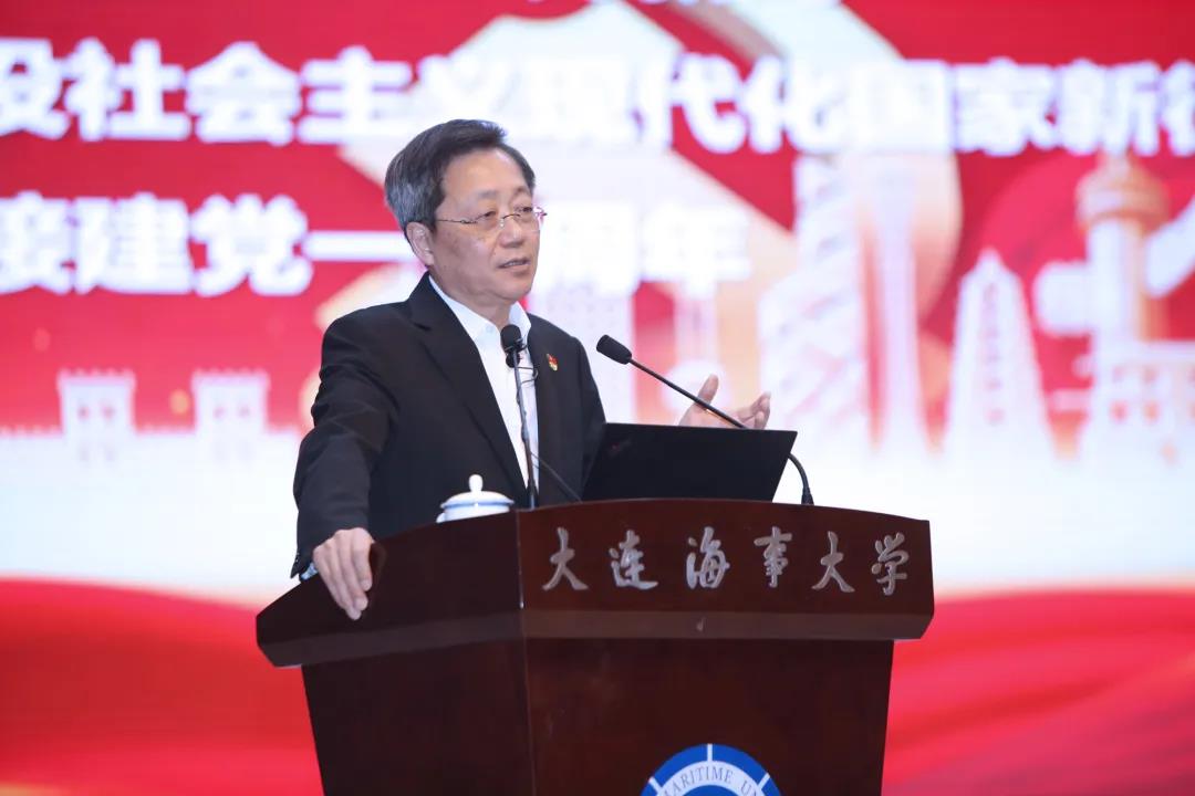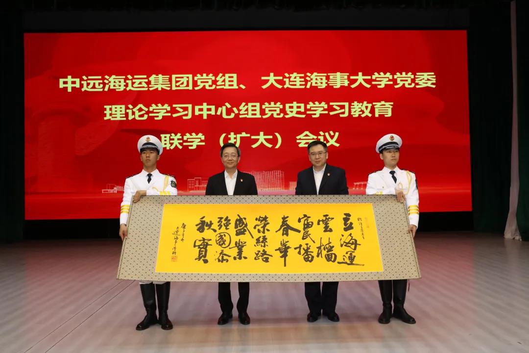 5月6日,中远海运集团党组、大连海事大学党委理论学习中心组党史学习教育联学(扩大)会议在我校举行,邀请我校校友、中国远洋海运集团党组书记、董事长许立荣作“航海人的光荣与梦想”主题报告。中远海运集团董事、党组副书记王海民,我校校友、中远海运集团总经理助理、中远海运物流董事长韩骏以及中远海运集团有关部门、单位领导,大连海事大学党委书记郑少南、校长孙玉清、党委副书记许民强、纪委书记罗钟山、副校长赵友涛、王小勇、赵宝刚以及中层干部、二三级教授与师生代表现场参加报告会。中远海运集团党组理论学习中心组成员、各二级和部分三、四级单位领导班子成员通过视频参加会议。