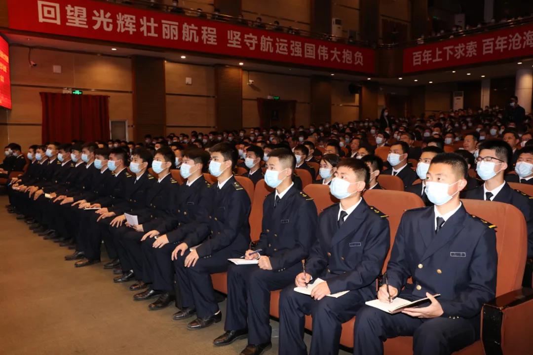 许立荣结合党史学习教育,结合中远海运集团的发展历程,和大家一起回顾在党的领导下,我国航运业经历的沧桑巨变、取得的辉煌成就,昭示的美好前景。他重点围绕航运波澜壮阔的历史激励我们坚守航运强国的战略选择、光辉壮丽的航程鼓舞我们坚守航运强国的伟大抱负、恢宏壮美的蓝图感召我们坚持海运成才的人生航向三个方面,系统阐述了对航海事业的认识与感悟。他表示,中国近代百年航海史,是中国共产党带领航海人为建设海洋强国、航运强国不懈奋斗的历史,是党的光辉历史的组成部分。见证了百年航运事业的沧桑巨变,浓缩了百年奋斗圆梦的历史征程,谱写了百年催人奋进的航海精神。一部中国近代航运史,就是一部爱国奋斗史,激励着我们不忘初心、牢记使命,为建设海洋强国不懈奋斗。他强调,以图强报国的爱国精神、不畏艰险的奋斗精神、心如磐石的坚守精神、同舟共济的合作精神为主要表现的航海精神是我国航运界乃至中华民族共有的精神财富。他勉励同学们要继承和发扬航海精神,持之以恒的学习,练就海纳百川的胸怀,脚踏实地的定力,战风斗浪的勇气,为建设航运强国贡献智慧力量。