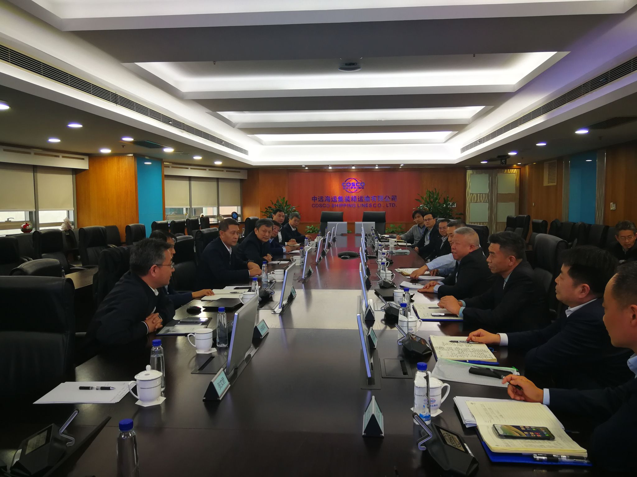在中远海运集装箱运输有限公司,公司安全监管/科技创新部常务副总经理吴臻围绕智能船舶、航运大数据和供应链韧性等方面做了详细介绍。他表示,集装箱运输的全球化网络亟需数字化赋能,学校在区块链航运物流、无人码头技术等领域的研究可为集运提供解决方案。希望双方在全球集装箱智能调度、优化航线资源配置、航运大数据分析等方面深入开展合作,助力企业向智慧物流服务商转型。公司相关部门领导参加了座谈。