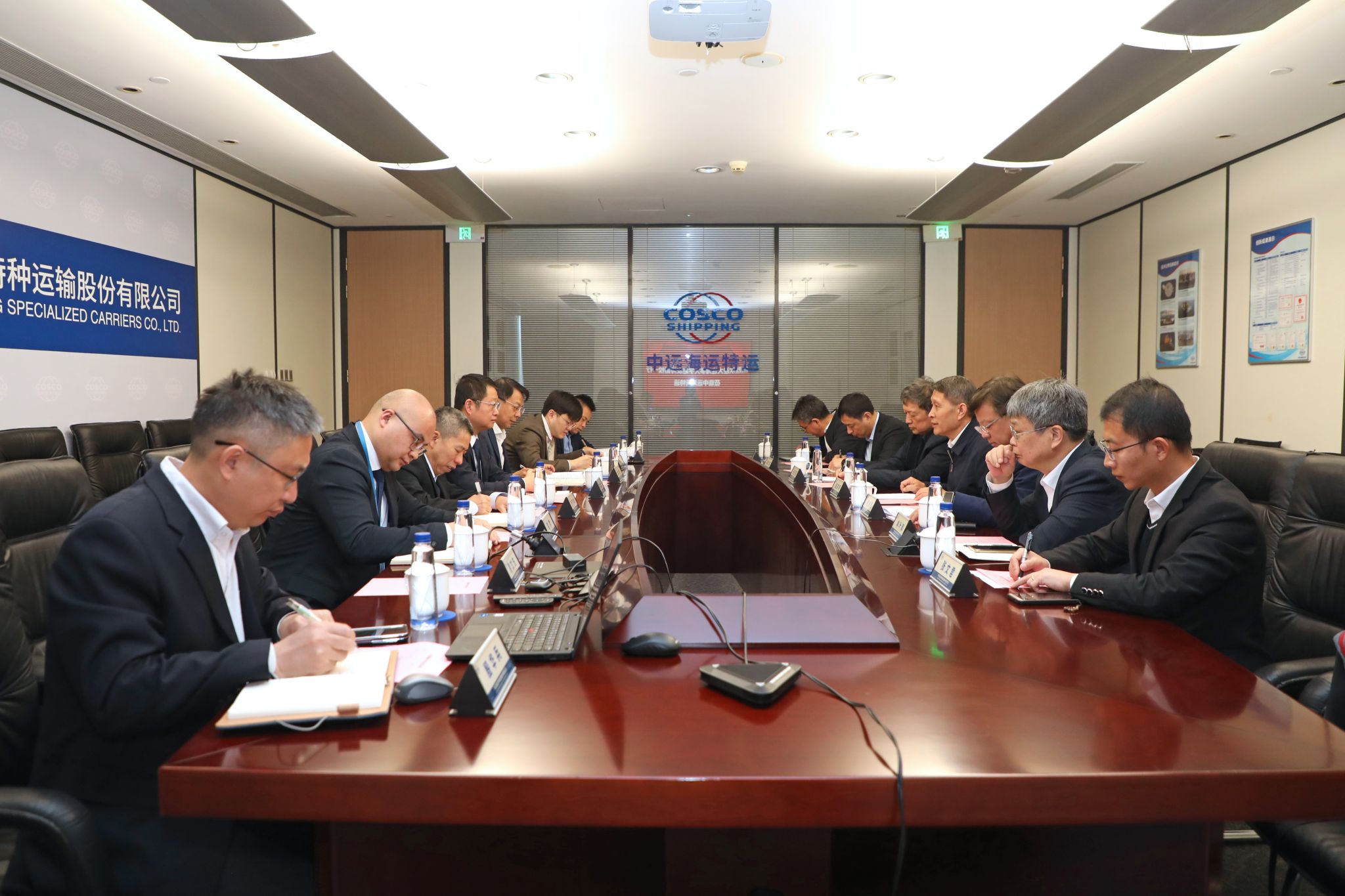 在中远海运特种运输股份有限公司,公司副总经理蔡连财介绍了特种运输船舶的发展历史以及高端特种船舶(如半潜船、汽车运输船)的智能化运营与安全管理,充分肯定了学校在特种运输人才培养方面发挥的重要作用。他表示,特种运输场景复杂,亟需提升船舶智能感知和远程诊断能力,希望与学校在船舶智能感知、船舶状态监测与远程诊断等领域开展深度合作,助力企业提升风险防控水平,为重大件运输提供全周期保障。公司船舶管理部总经理郭芝鸿及相关部门领导参加了座谈。