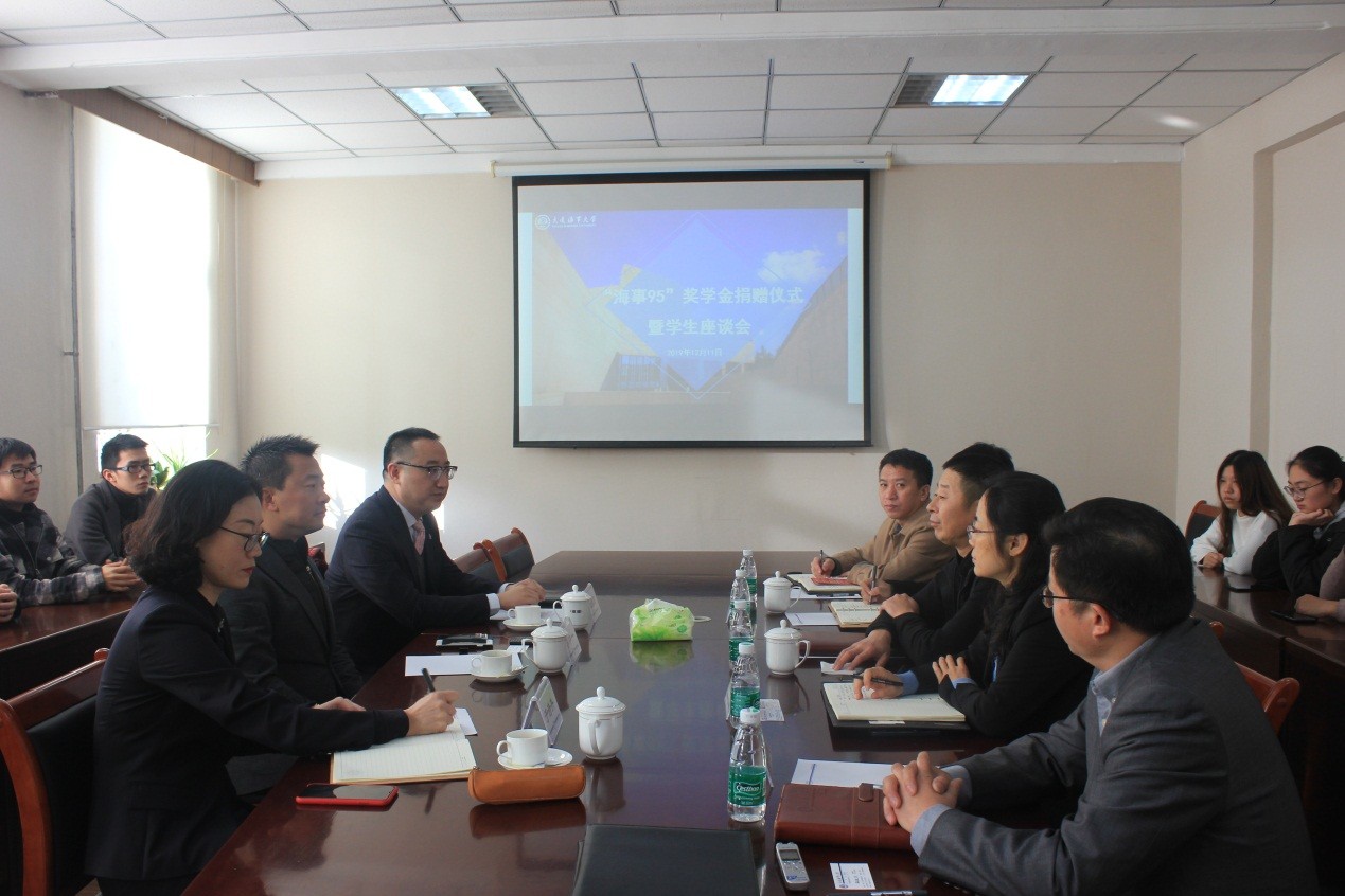 12月11日上午,法学院在法学楼209会议室举行“海事95”奖学金捐赠仪式暨学生代表座谈会。海事95校友代表苏中一、杜胜宏、于诗卉,校友合作处处长杨新宇、副处长靳伟,法学院党委书记徐燕、副院长蒋跃川、副书记赵刚及学生代表参加了会议,会议由徐燕主持。