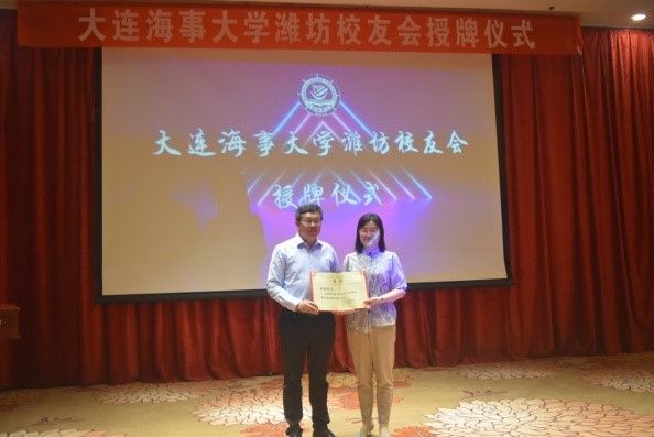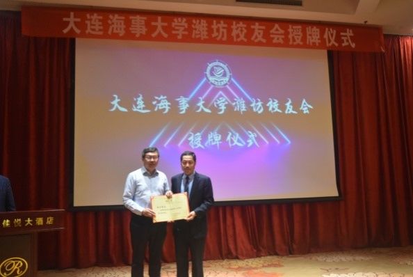 许民强为潍坊校友会授牌并为第一届理事会成员颁发聘书。