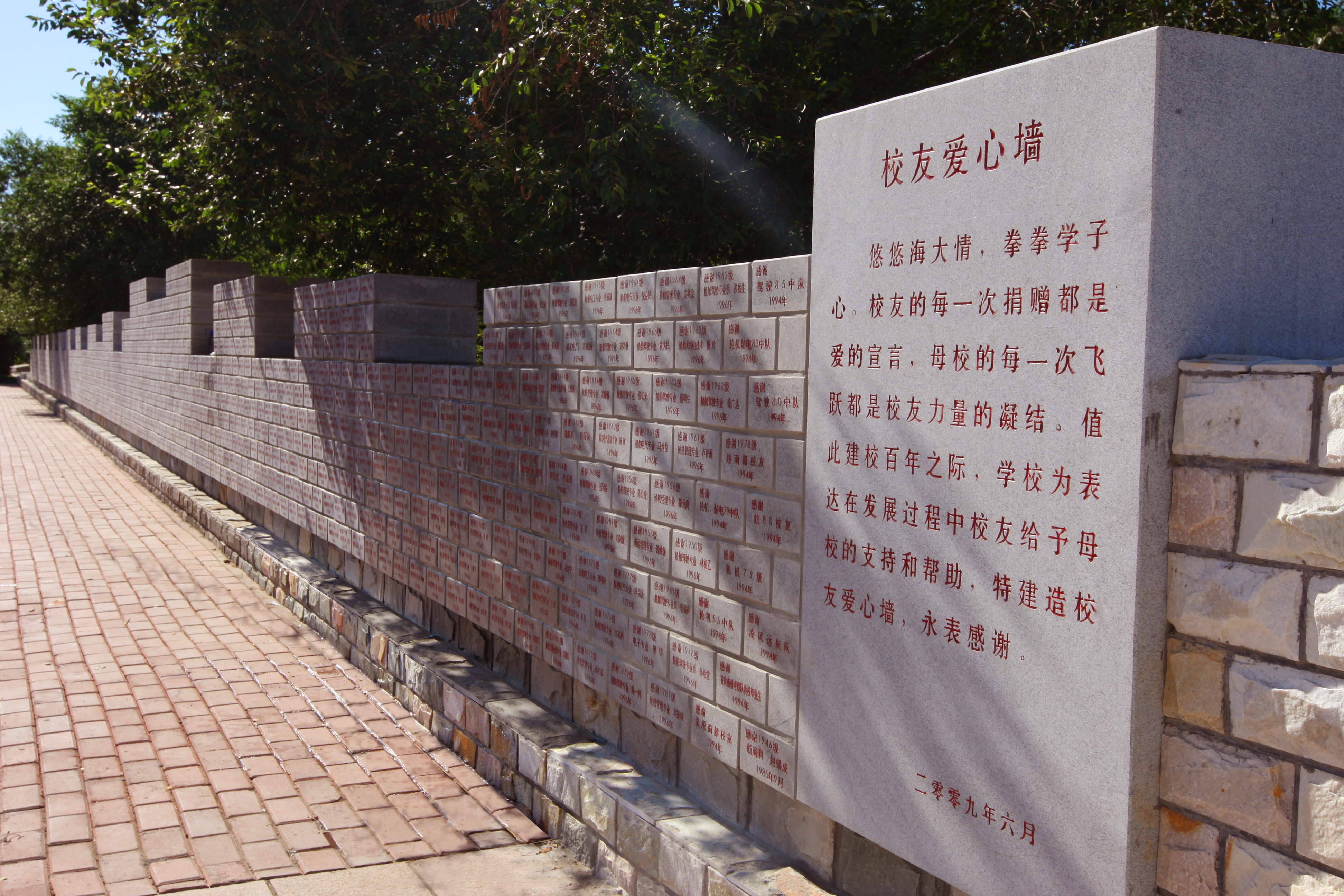 由一块块砖垒成的校友爱心墙,记录着每一个回馈母校学子的名字,寓意“感恩”。