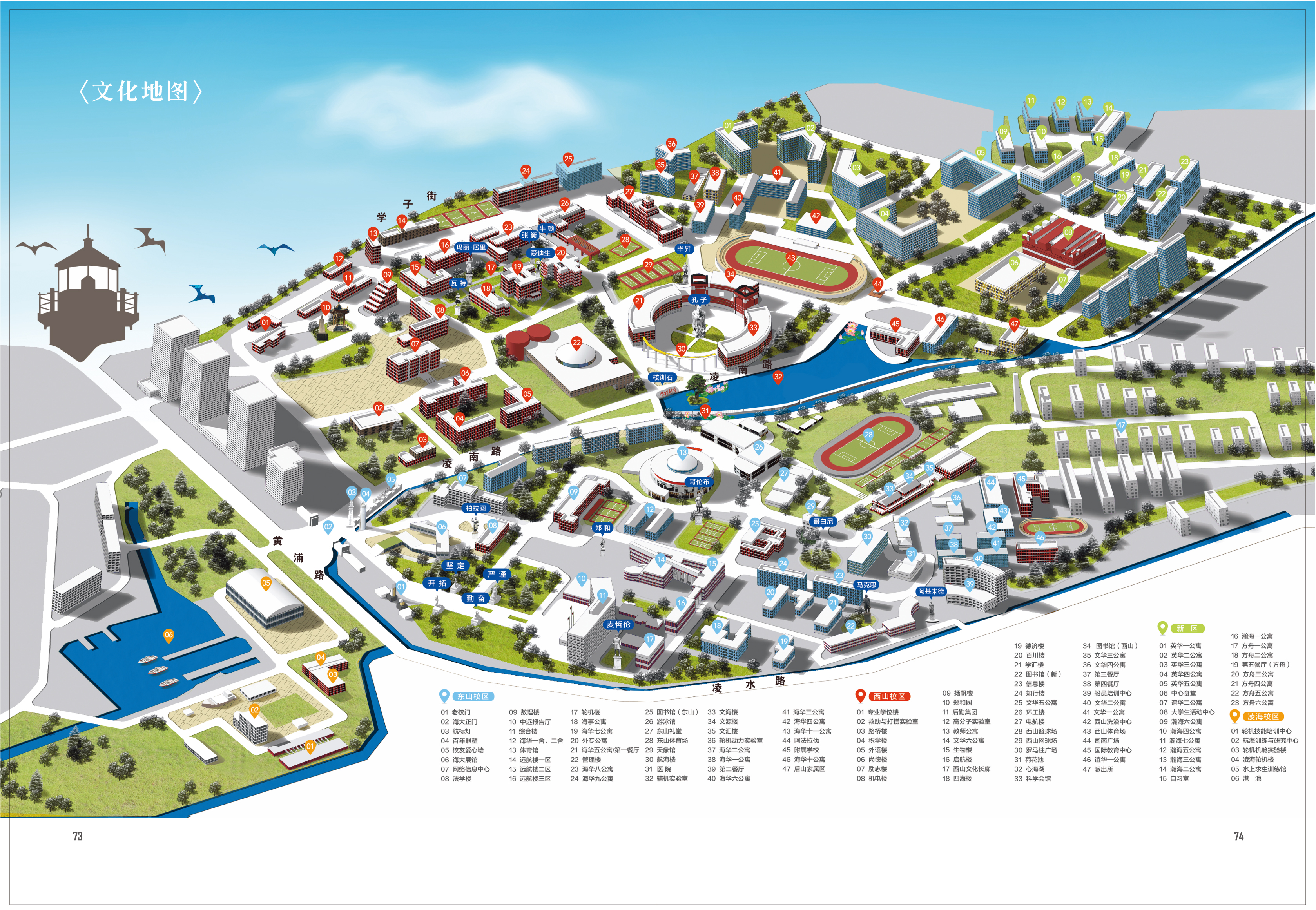 每座教学楼宇都有校园特色的名字,如以校训命名的“学汇楼”“百川楼”,以学科专业命名的“航海楼”“轮机楼”,以励志主线命名的“启航楼”“扬帆楼”等。