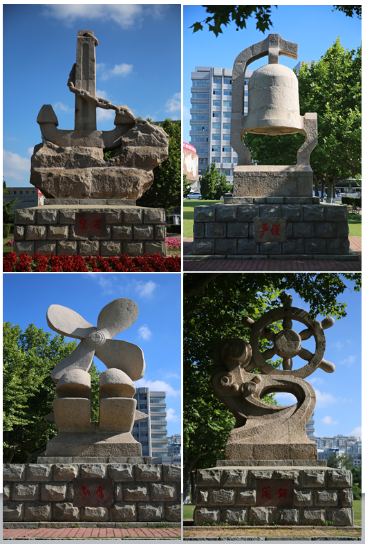 在百十年的办学历程中,形成了深厚的文脉与系列文化体系。“坚定、严谨、勤奋、开拓”的海大精神,我们将其物化为船锚般坚定、船钟般严谨、船桨般勤奋、舵轮般开拓。