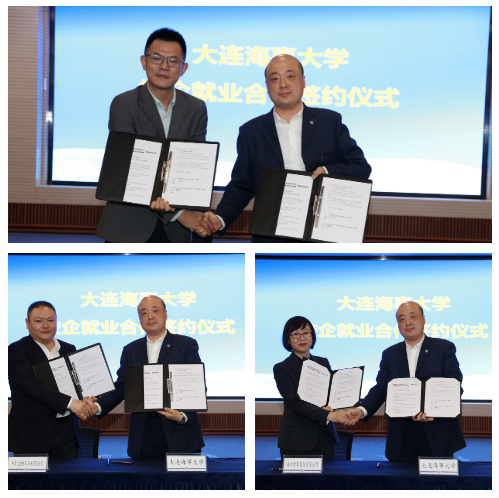胥佳明代表学校与沪东中华造船(集团)有限公司、中车大连机车车辆有限公司、海尔智家股份有限公司签订了校企就业合作协议。