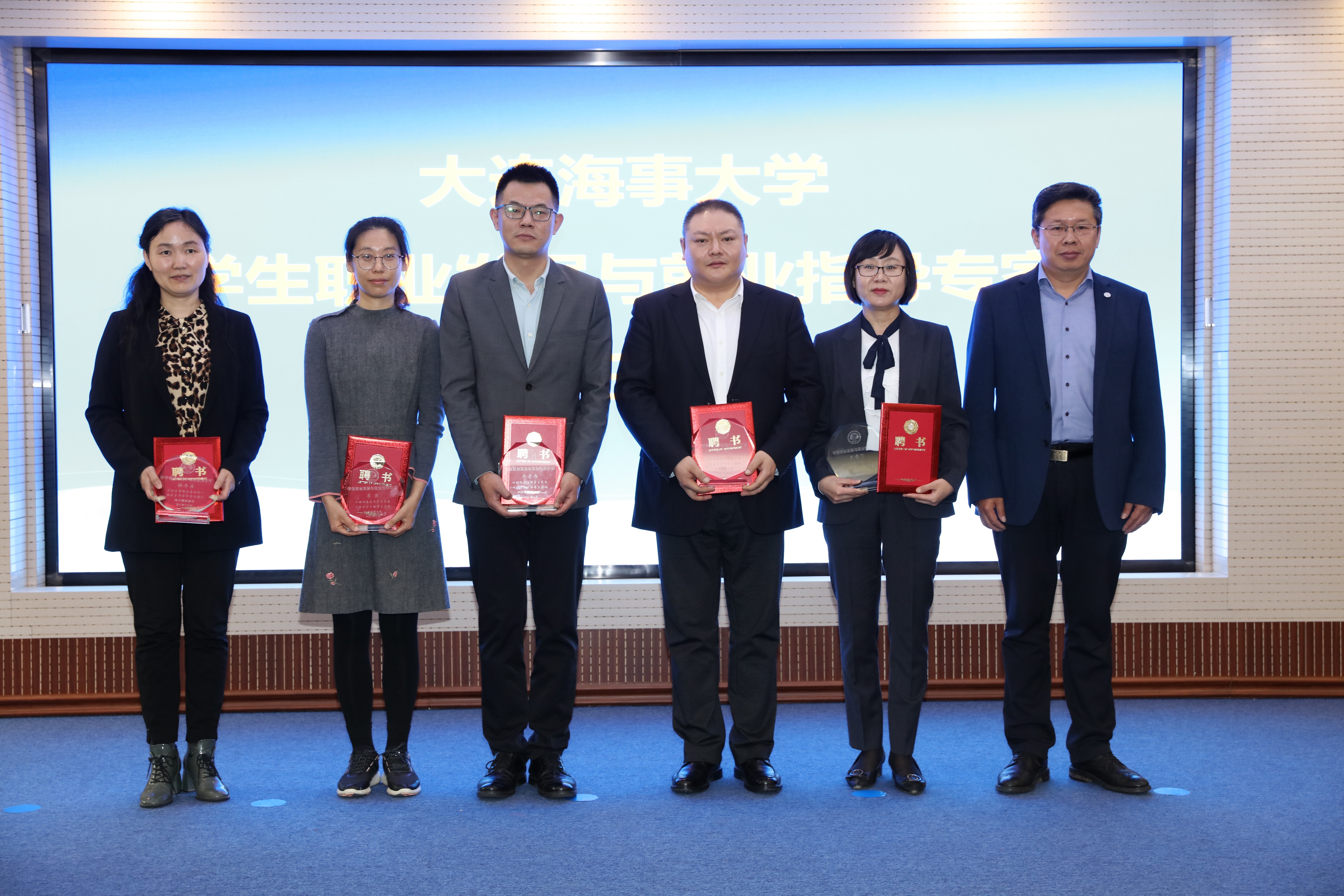 许民强为5位学生职业发展与就业指导专家代表颁发聘书。