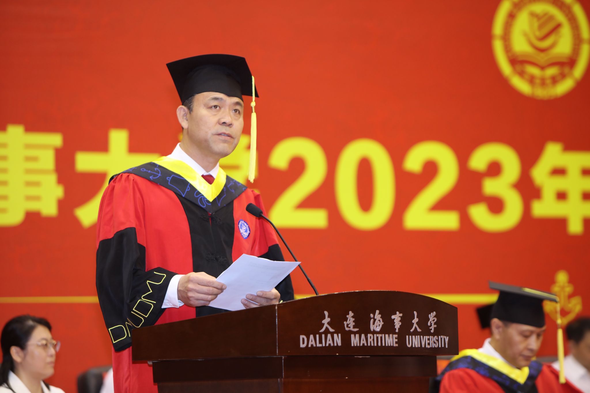 党委书记、校长孙玉清还为全体2023届毕业生作题为《拥抱时代,成就更好的自己》的讲话。他表示时间不语,却见证所有,2023届毕业生与时代同向、与交通同行、与海大共进。他希望同学们拥抱新时代,在时代大潮中成就自己、成就未来,一要心有大我、爱国力行,到海上去、到西部去、到部队去、到基层去、到一线去,到祖国最需要的地方去,开创不一样的人生;二要勤学为本、增长才干,在探究行业发展规律、攻克关键核心技术中有所作为,并衷心希望同学们养成两个习惯——读书和运动;三要不畏风雨、直面挑战,嘱托同学们“三个千万”:碰到困难千万别畏惧退缩、遭遇不公千万别怨天尤人、身处逆境千万别一蹶不振,要始终保持攻坚克难的决心、直面困难的勇气、从容不迫的心境;四要脚踏实地、奋斗以成,在担当民族复兴伟业、交通强国建设重任中实现自己人生价值的增加。