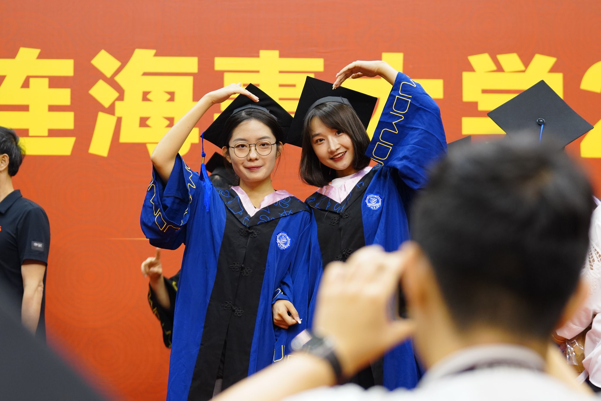 毕业生代表现场演唱了毕业原创歌曲《当那一天》,表达了他们对母校的热爱和眷恋,全场还齐唱校歌表达了2023届毕业生对海大的美好祝愿。毕业典礼在全场的深情祝福中落下帷幕。