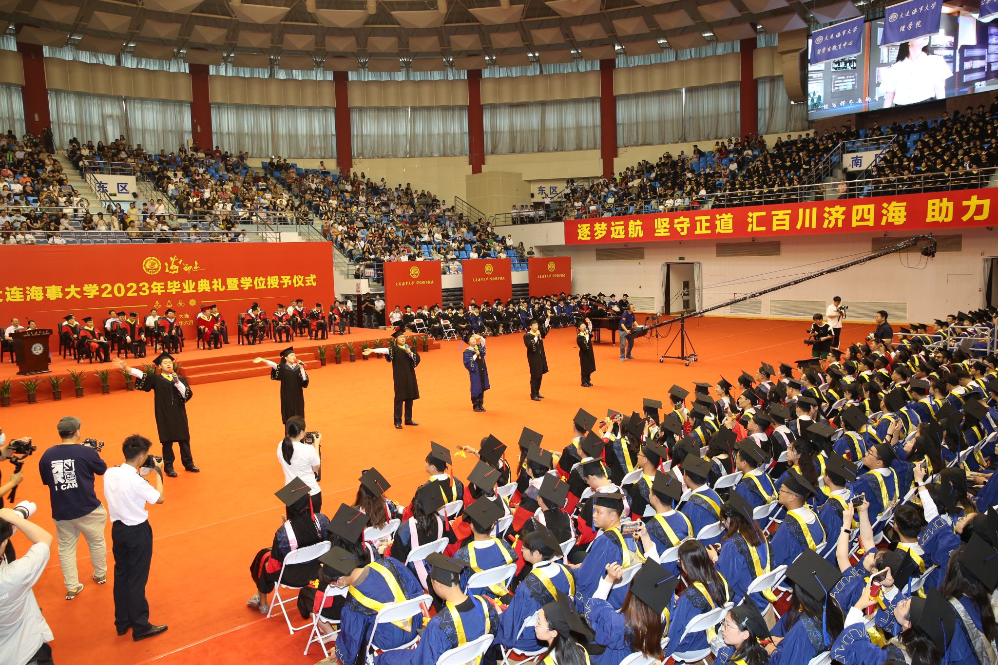 6月27日,大连海事大学“海大•印迹”—2023年毕业典礼暨学位授予仪式在体育馆隆重举行。校领导孙玉清、许民强、罗钟山、赵友涛、王小勇、赵宝刚、初北平,我校1994届校友、华洋海事中心有限公司总经理李立谦先生,以及学校学位评定委员会成员代表、各学院党政负责人、机关职能部门负责人、教辅等相关单位负责人、教师代表、嘉宾代表、学生工作干部和2023届毕业生出席典礼。毕业生家长亲友和2020-2022届未能现场参加毕业典礼的毕业生受邀参加毕业典礼。