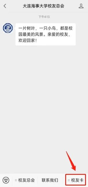 登录“大连海事大学校友总会”订阅号或直接搜索“大连海事大学校友总会”进入。