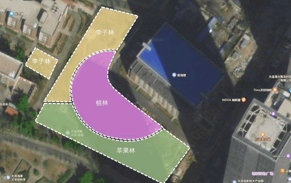 经前期征集筛选,果树林已确定22个候选名称,分别为清苑、同心园、予实园、友香园、百果园、海上林、校友林、桃李芳、闻香园、浪花林、德汇林、聚芳园、谦泰园、海韵园、擢秀林、憶春霖、桃李灼华、径乐材盛、心海凝情、桃李平盛园、校友·新郑和园、校友·桃李芬芳园(名称按字数排序)。
